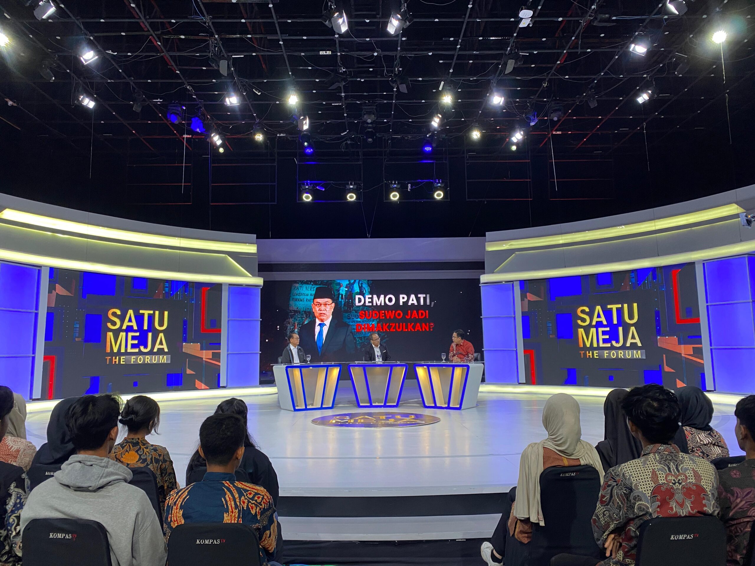 Satu Meja The Forum KompasTV (20/8/2025) menghadirkan sejumlah narasumber untuk berdialig di bawah tema “Demo Pati, Bupati Sudewo jadi Dimakzulkan?” yang dipandu oleh Budiman Tanuredjo.