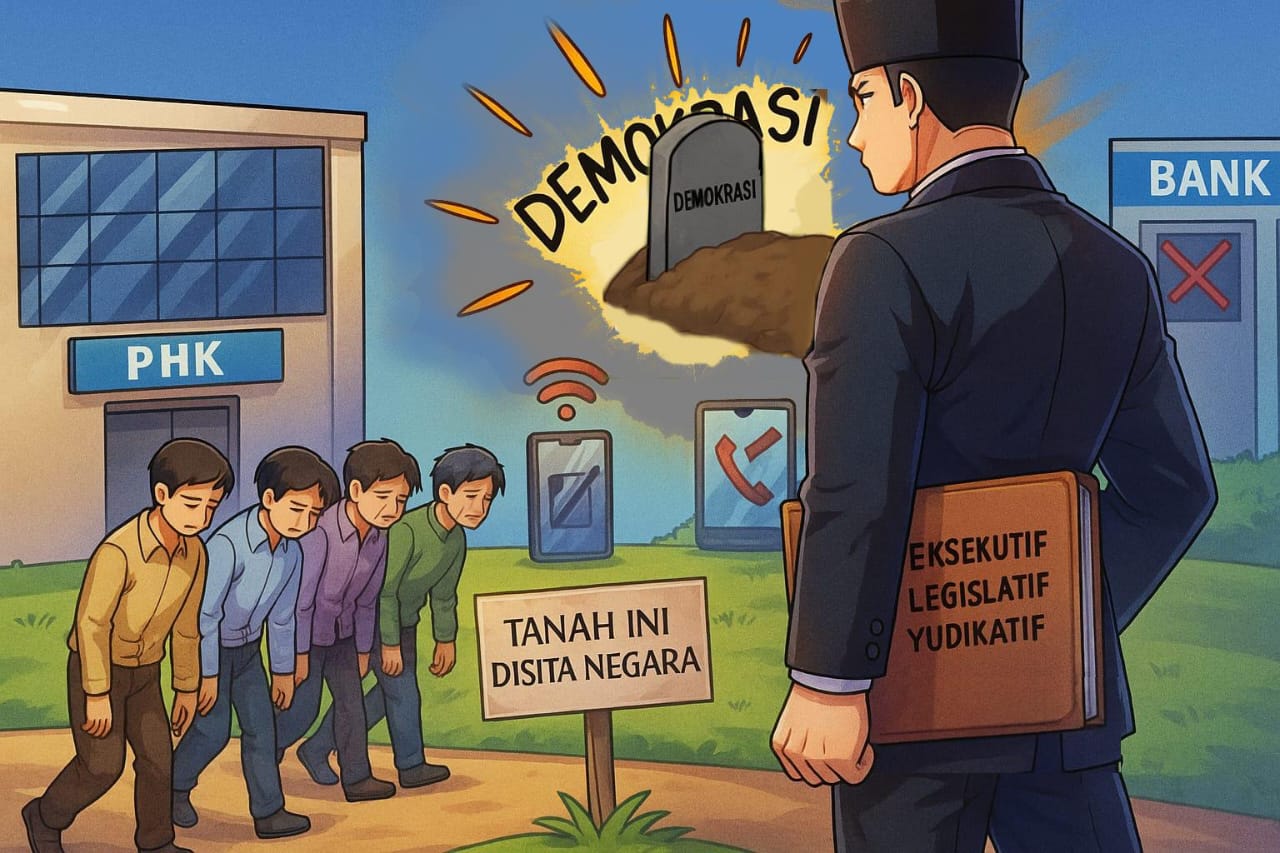 Kekuasaan kini terkonsentrasi di satu tangan, membuat checks and balances nyaris hilang. Ruang publik makin terhimpit, sementara negara kian represif lewat penyadapan, blokir rekening, hingga simbol budaya dipersekusi. Elite politik kerap arogan, partai dan ormas memilih diam, sementara ekonomi rapuh meski data resmi dipoles. Dalam situasi ini, harapan terakhir ada pada kesadaran warga: menjaga ruang publik, menjaga demokrasi, dan berani berkata โtidak.โ