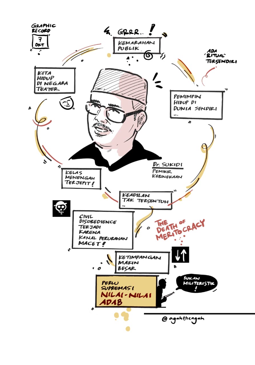 “Di negeri ini meritokrasi telah mati dan digantikan kakistokrasi,” ujar Sukidi, mengingatkan bahwa Prahara Agustus 2025 bukan sekadar kerusuhan, tetapi ekspresi kemarahan kelas menengah terhadap negara yang tak adil.