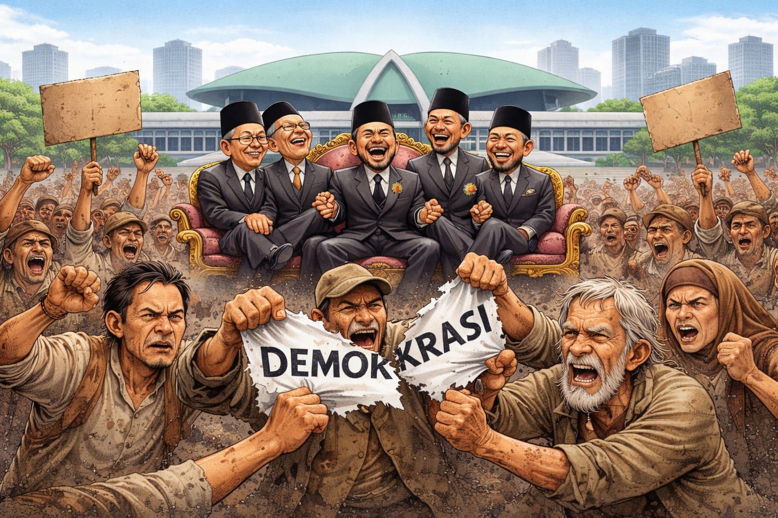 Pilkada DPRD dan kriminalisasi ekspresi kritis bukan dua peristiwa terpisah. Keduanya membentuk satu garis lurus: penyempitan ruang partisipasi generasi mayoritas.